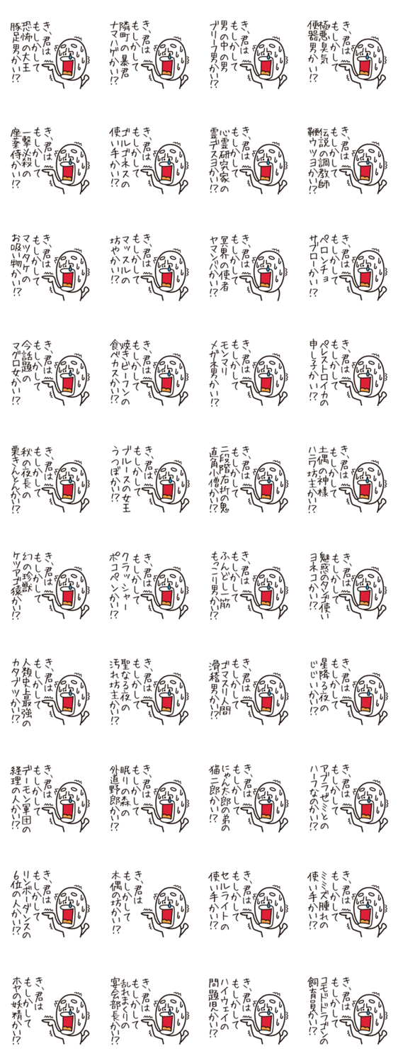 | スタンプ説明 | お笑い芸人のみなさん。 このしょーもないツッコミスタンプを使い、 日常会話で笑いを取ってみてください。 お笑いのプロなら楽勝ですよね? 華麗なる一言 #003 |