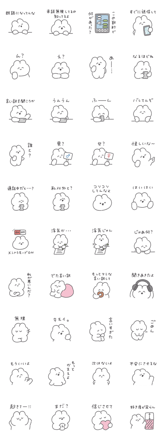 メンヘラ上等!な、うさちゃんスタンプ第4弾♩ 今回のうさちゃんはちょっと冷ためです…! (うさぎ/ウサギ/兎/ワガママ/我儘/地雷/嫉妬/毒舌/カップル/夫婦/彼氏彼女)