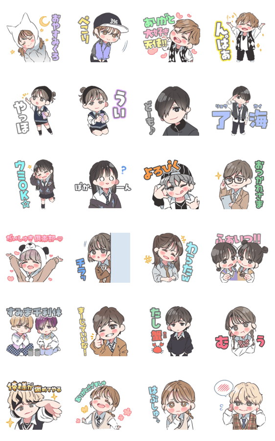 みくろとみくろ演じるキャラクターたちのスタンプが登場!日常会話で使えるものから、お馴染みのセリフまで!使い方は396通り!えんじょ〜い☆
