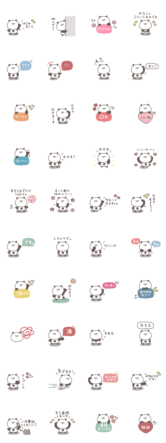 一つあると便利な小さくてかわいいぱんだのスタンプです。 パンダ/大人可愛い/シンプル/あいさつ/吹き出し/くすみカラー/カラフル