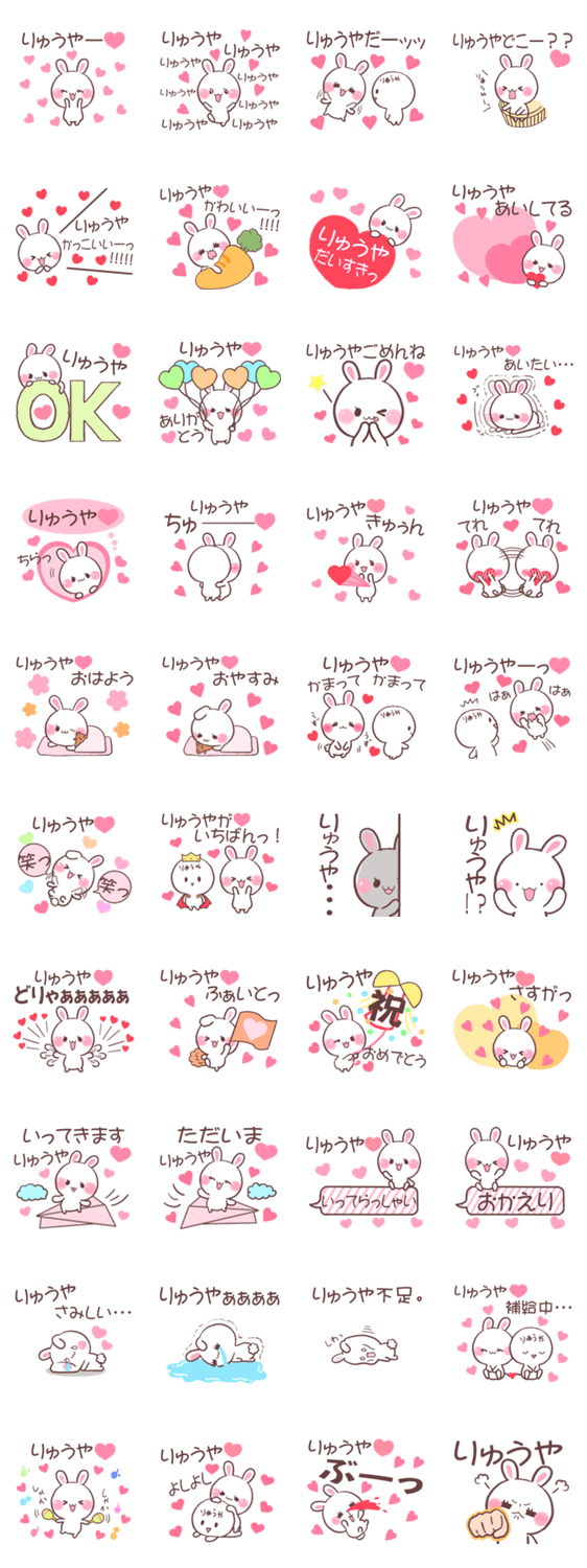 大切なりゅうやへ送るかわいいうさぎの名前、あだ名スタンプ♡毎日使って愛を深めてね♡ぽぽんのスタンプ第21弾♡