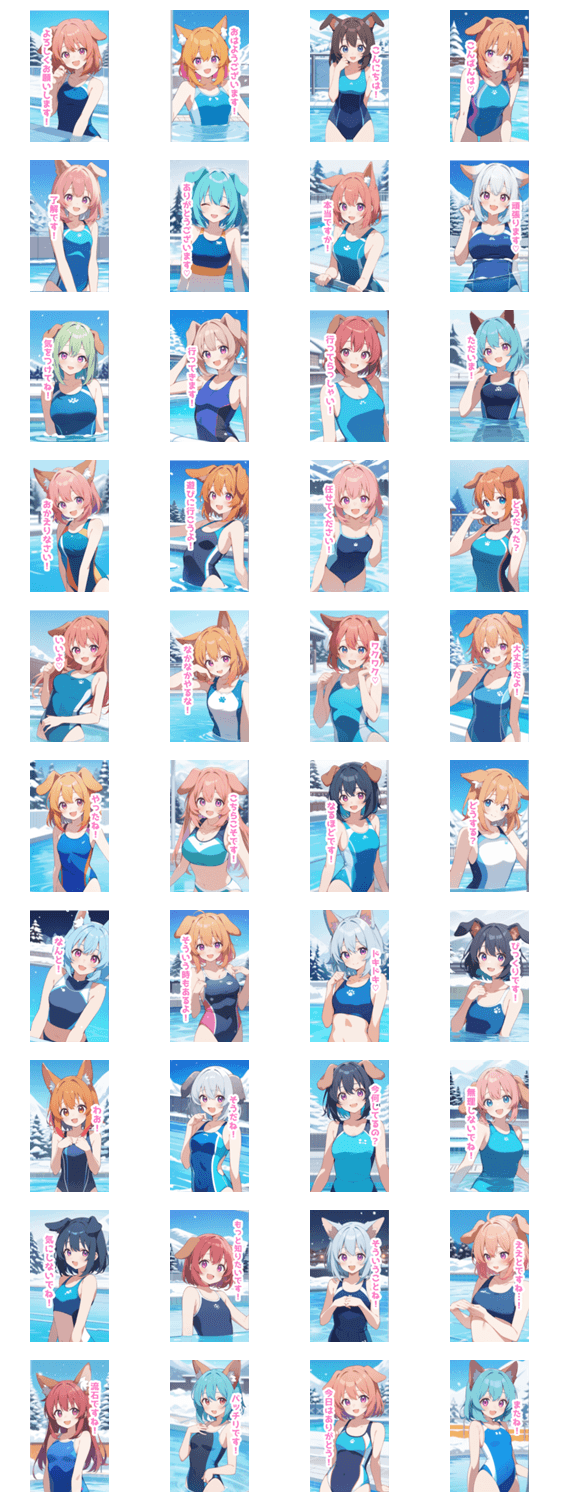 冬プールの水着の犬の女の子BIGスタンプ -LINEスタンプマニア