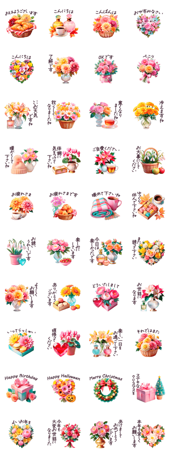 フランス 秋冬 年末年始 敬語✿大人上品お花 -LINEスタンプマニア