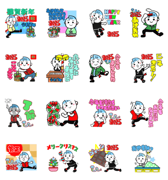 作者タリタリドナとタリタリドナドナの日常で使えるスタンプ。年末年始2025、お正月、巳年、クリスマス、蛇年。あけおめ・ことよろ・お正月・クリスマス、。ロカビリー