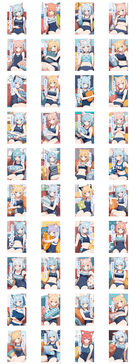北欧部屋のスクール水着猫女子BIGスタンプ -LINEスタンプマニア
