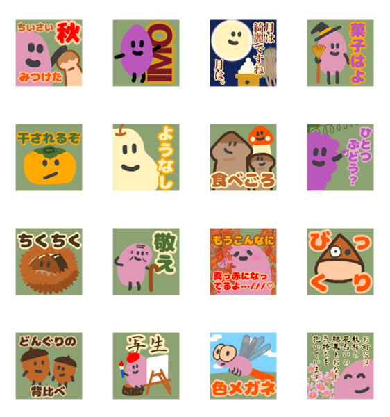 | スタンプ説明 | 隣の客よりよく柿食う人になりがちな季節におすすめのスタンプです。 |