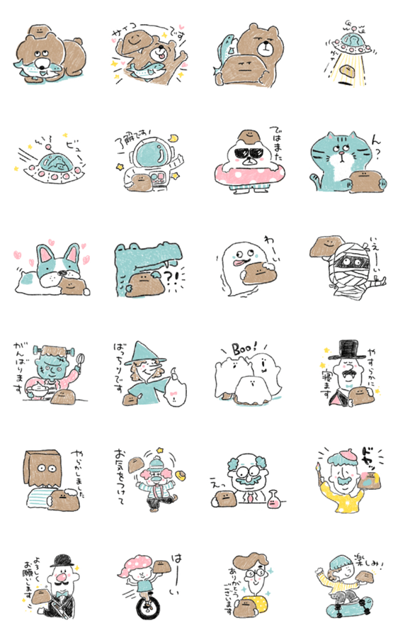 ふわふわシフォンケーキとゆるっとした人たち。いろいろな人たちに北海道から幸せのおすそわけを届けたいシフォンケーキのスタンプです。