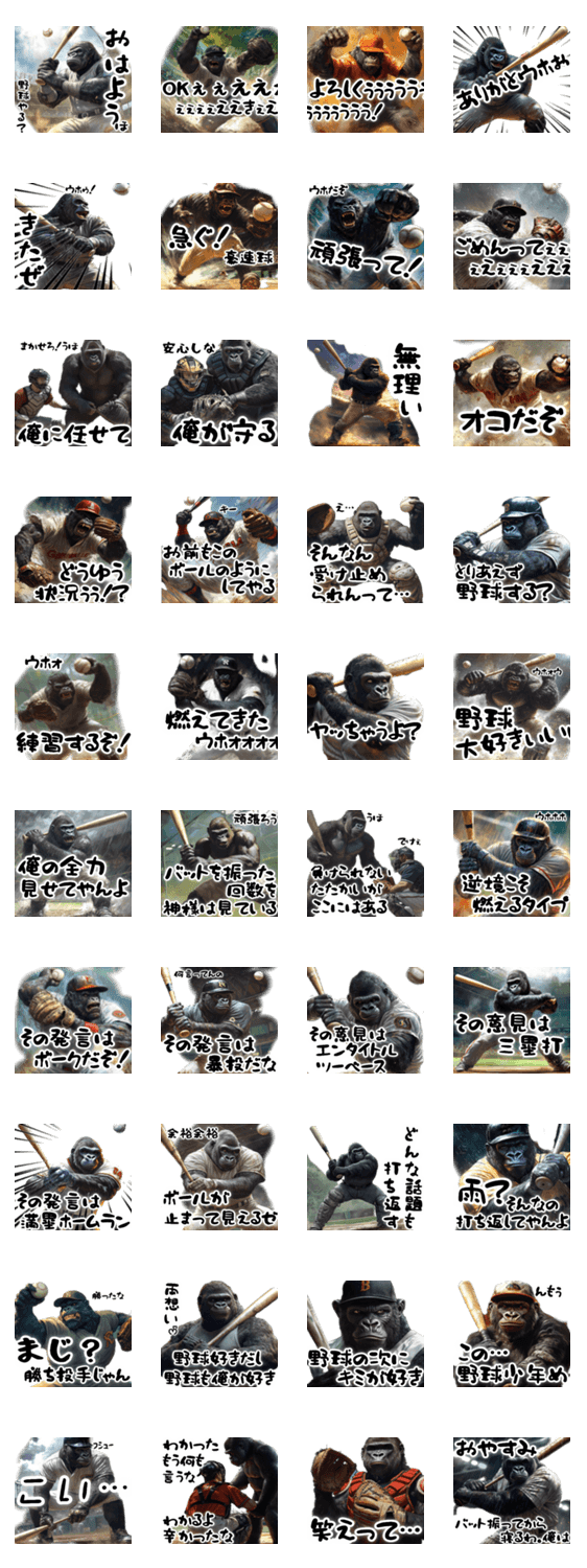 全力野球ゴリラ!(毎日使える全力シリーズ) -LINEスタンプマニア