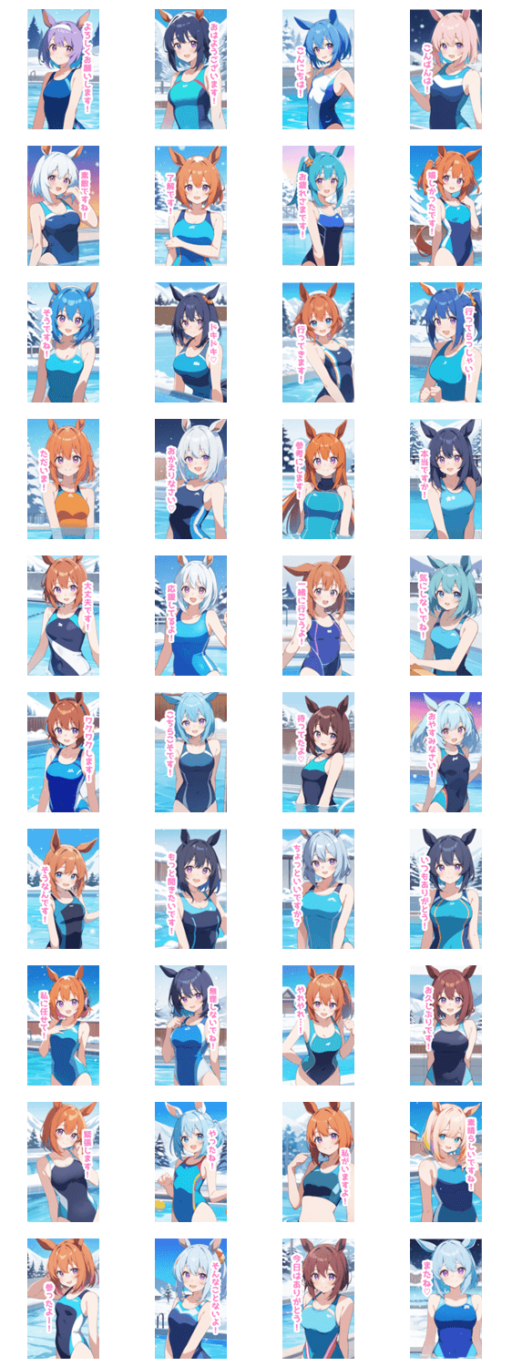 冬プールの水着の馬の女の子BIGスタンプ -LINEスタンプマニア