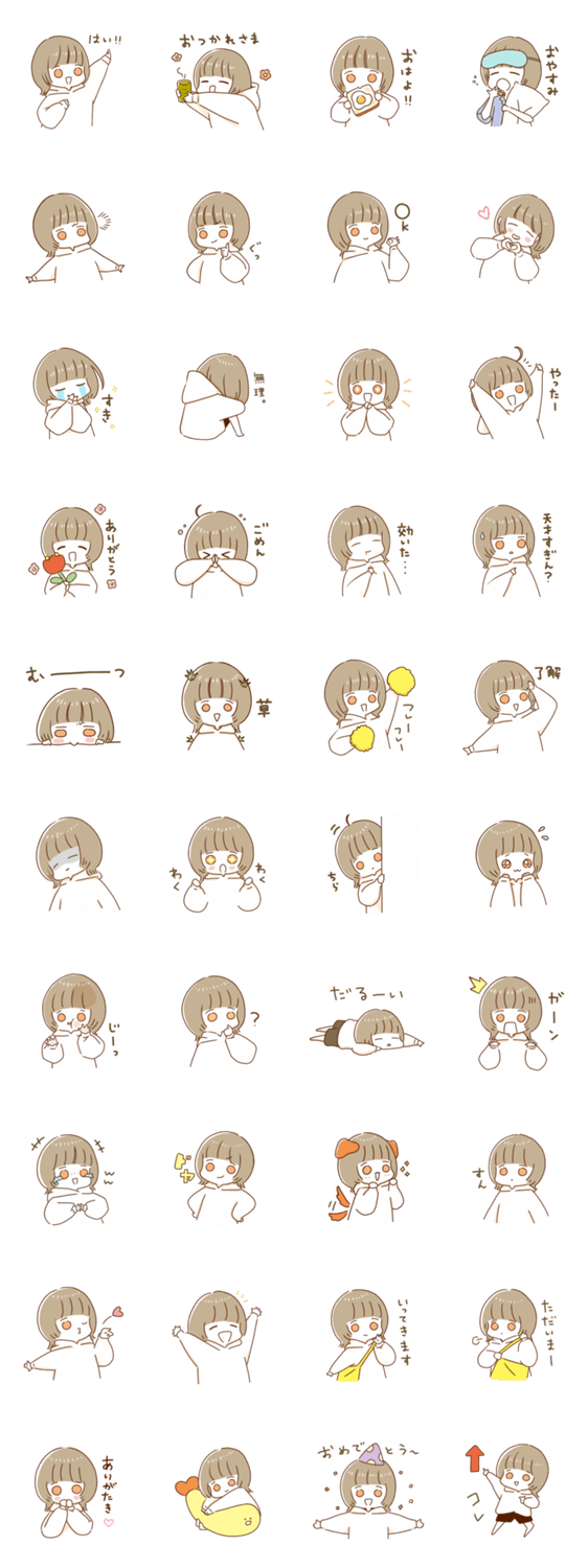 毎日使えるゆるゆるパーカー女の子のスタンプです。