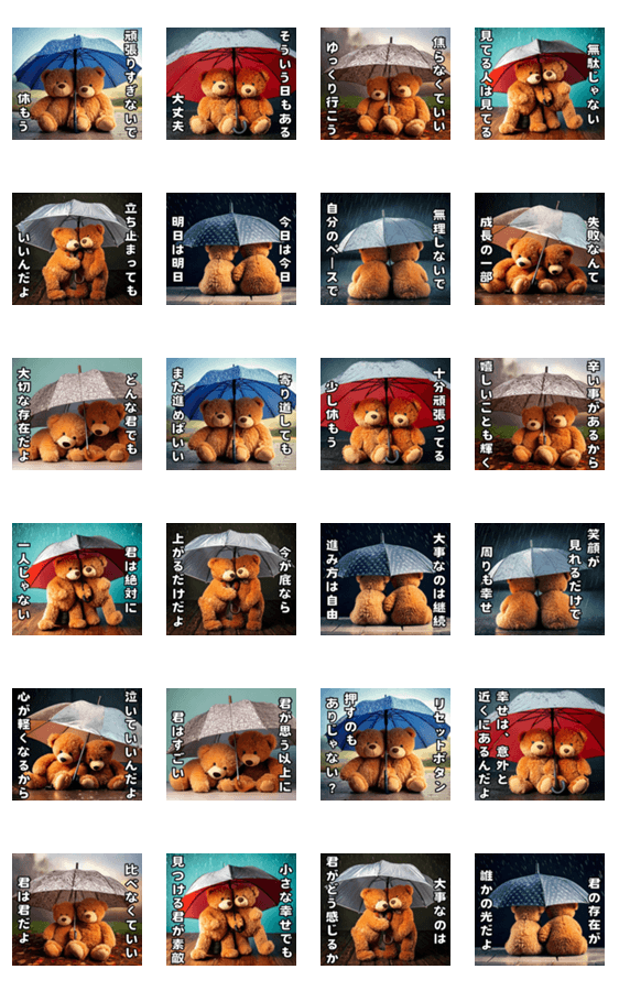 励まし熊/止まない雨はない/応援メッセージ/癒しスタンプ/雨/クマ/励まし/元気が出る/ポジティブ/キャラクター/かわいい/ネタ/癒し/テディベア/熊/ぬいぐるみ