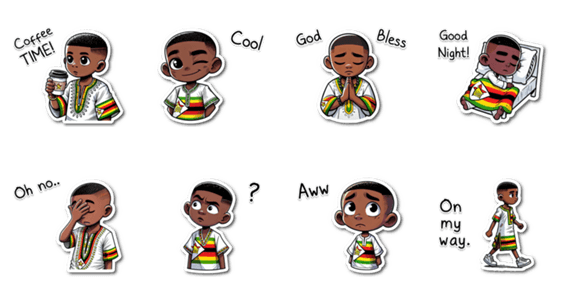 ジンバブエ少年ステッカーセットで自己表現を!さまざまな生き生きとした表情で、チャットにアフリカの風を加えます。今すぐ入手!