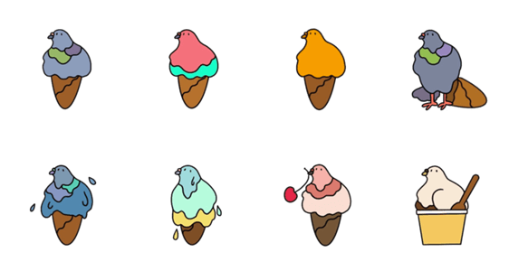 ハトポたちがアイスになりました。 ピジョン オン ザ コーン でピジョコンです。