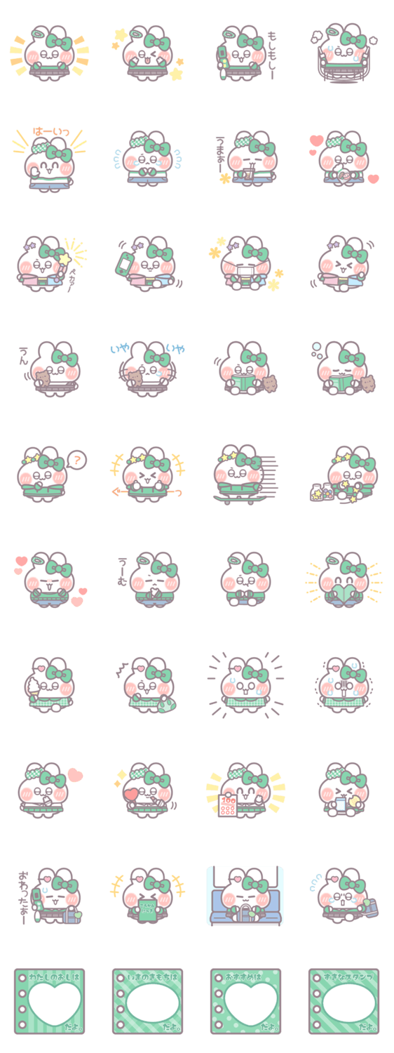 平成っぽいうさぎ。色違いもあるよ!! 下4つのスタンプは、好きなスタンプの前に配置して使ってね。 友だち/仲良し/女の子/レトロ