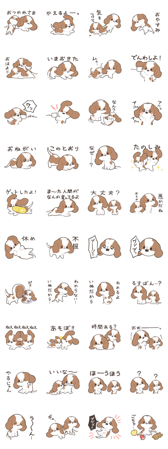 日常で使える元気なキャバリアのスタンプです。 新入りの子犬も登場します。