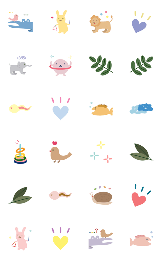 スタンプ説明 ワニと鳥、ライオンとウサギの友達になりましょう!