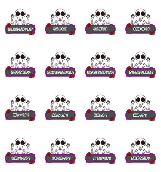 ちょっとした会話で使えるバラとスカルの敬語スタンプです。