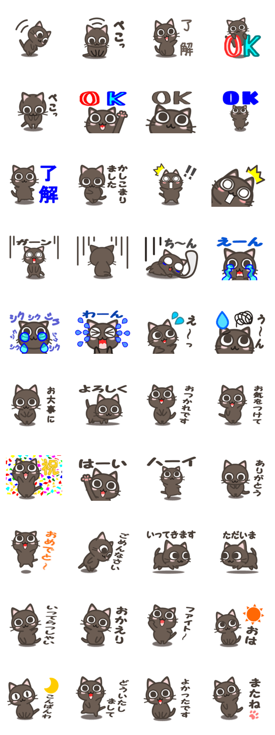 日常会話に楽しく、かわいいスタンプを使ってみてはいかが?よく使う基本の黒子ネコちゃんです。シンプル。ポップ。皆さんに幸せが訪れますように。