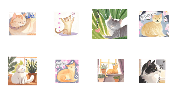 水彩画風ゆるかわ猫です。可愛い猫さんたちに癒されながらぜひ使ってみてください!