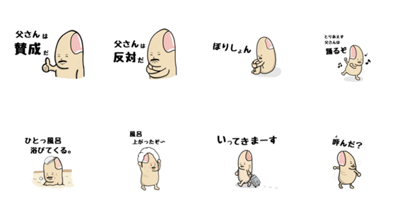 スタンプ説明 どこにでもいる、ありふれたお父さん指の日常です。