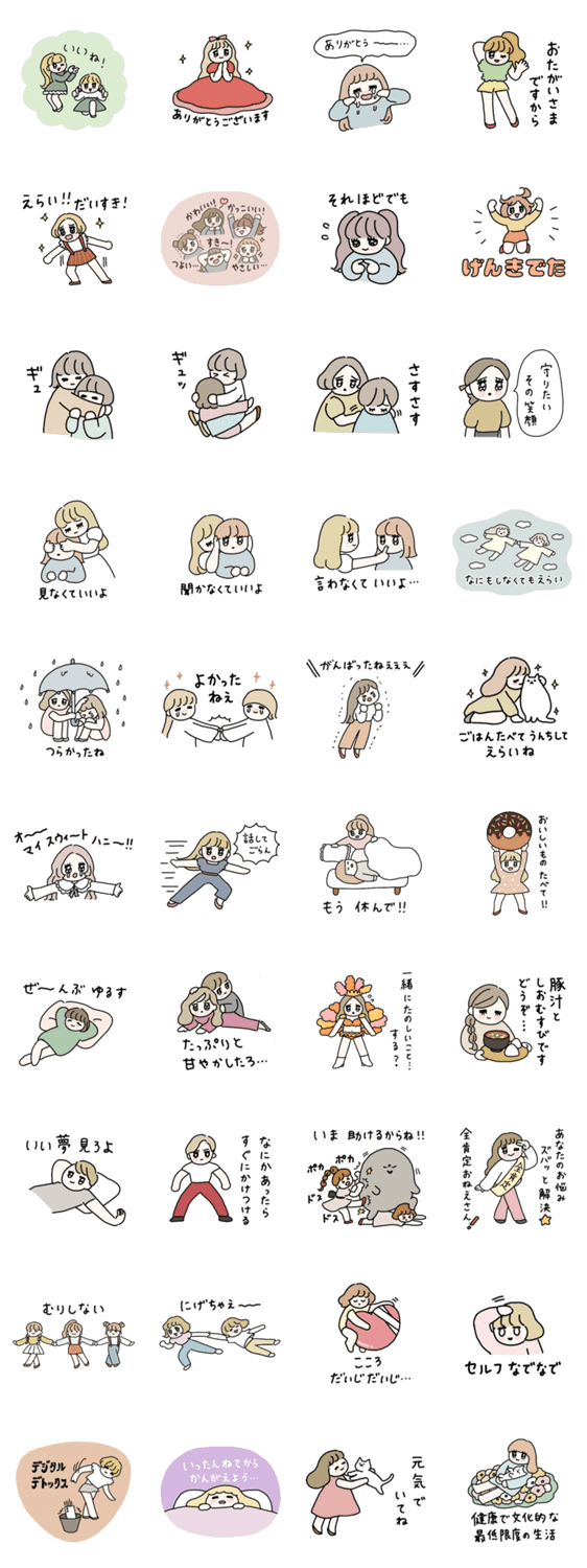 かわいくてやさしい いたわりのスタンプだよ〜みんなすこやかであれ