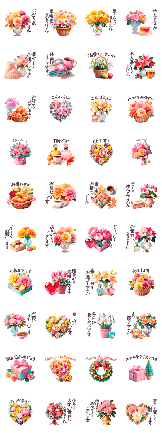 フランス 冬 年末年始 敬語✿大人上品お花 -LINEスタンプマニア