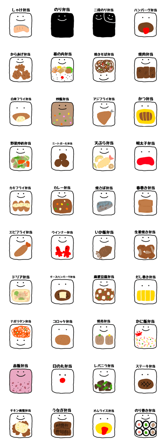 いろいろなお弁当のスタンプです。家族・パートナー・友達・同僚にお弁当を買ってきてもらう時にも使えます♪お弁当のリクエストにも♪弁当 bento lunchbox