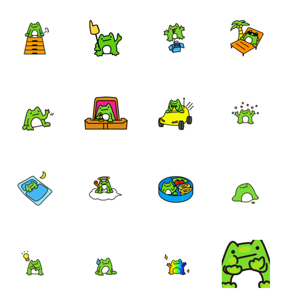 真顔のカエルさんのスタンプです 人間の言葉はまだ喋れないみたいなので文字は無いです