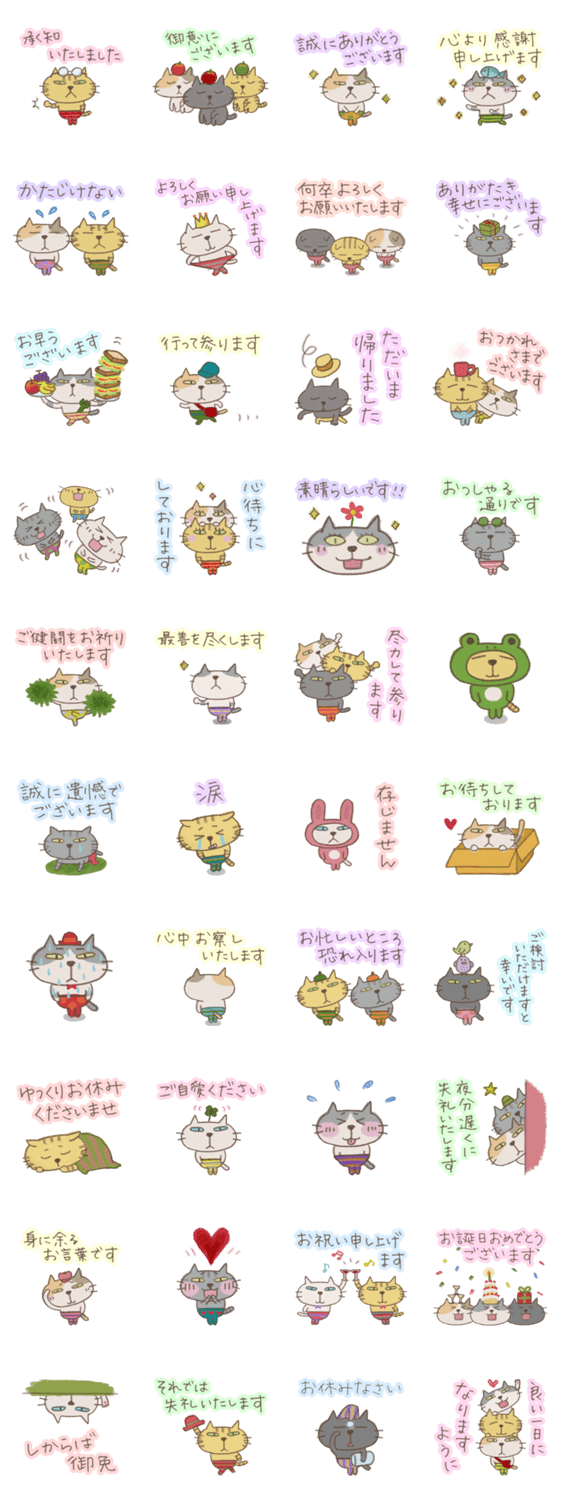 ぶさかわな猫たち。とっても丁寧なの。家族や友人との日常会話はもちろん、ゆる〜くお仕事関係にも♪