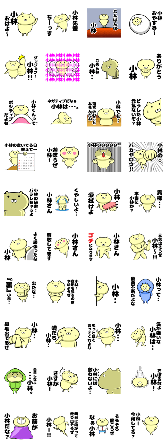 『誰々専用スタンプ』第15弾!!小林(こばやし)さんに送るときに便利なスタンプ。小林さん以外の人(佐藤、鈴木、高橋、加藤、よし子、藤田、田中など)に送っても面白いよ♪