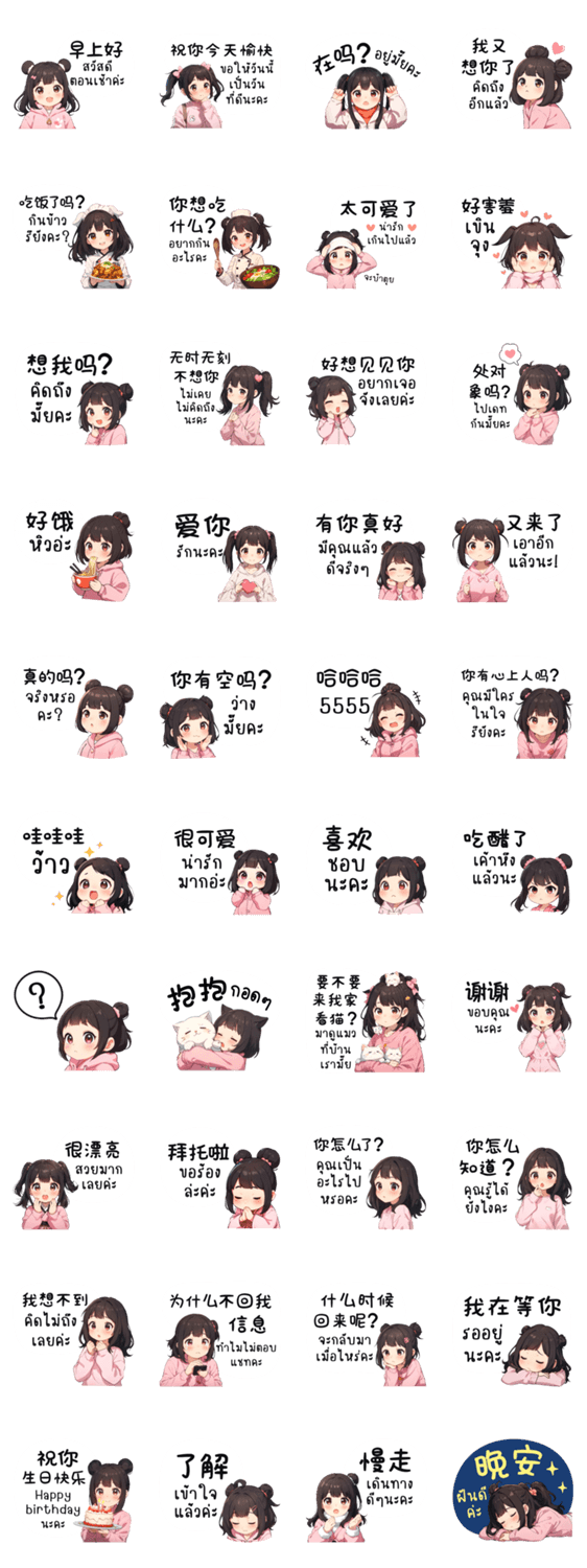 A cute girl falls in love (Chinese-Thai) -LINEスタンプマニア