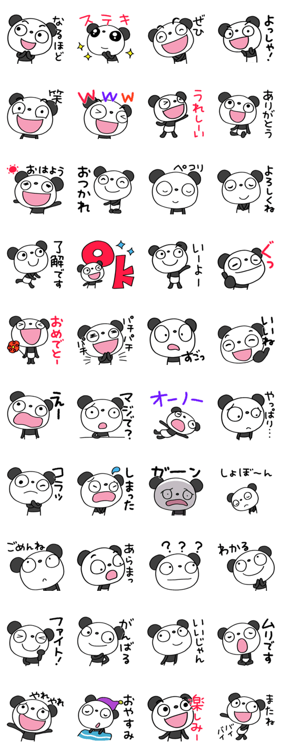 | スタンプ説明 | ふんわかパンダの大きなリアクションスタンプ!気持ちを大きく表現した、シンプルで分かりやすいメッセージがいっぱい。毎日の会話をリズミカルに伝えてみよう。 |