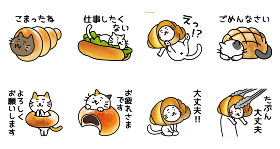 まゆねこの庭スタンプ、ねこパン編です。