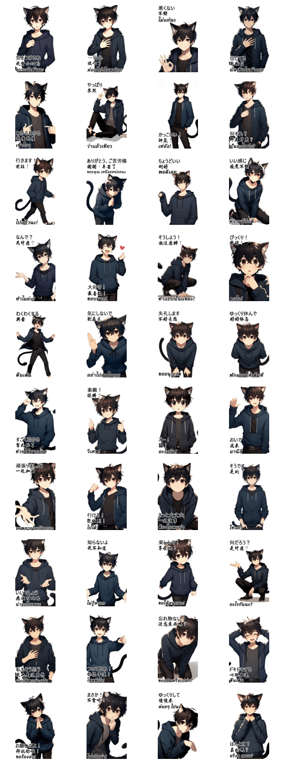 日本語、タイ語、台湾語の文字を使用することで、外国人の友人との交流の実用性が高まります。 ※このスタンプはトークルームで大きく表示されるBIGスタンプです。