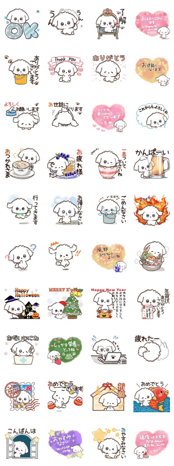 キュートなワンコが使い易いスタンプでご挨拶するよ♡大切な人に丁寧に伝えます♪マルチーズ/挨拶/愛犬/モフモフ/毎日/尊敬語/ありがとう/おはよう/Bnasuko