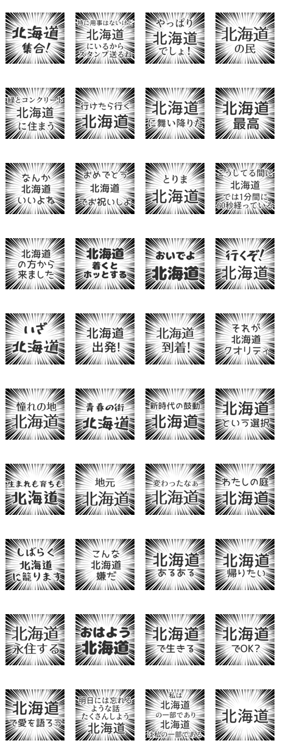 地元のための漫画風セリフスタンプ。集中線で叫べ。地元の人にも憧れてる人にも。面白いのが見つかると嬉しい。集中線。地元愛。