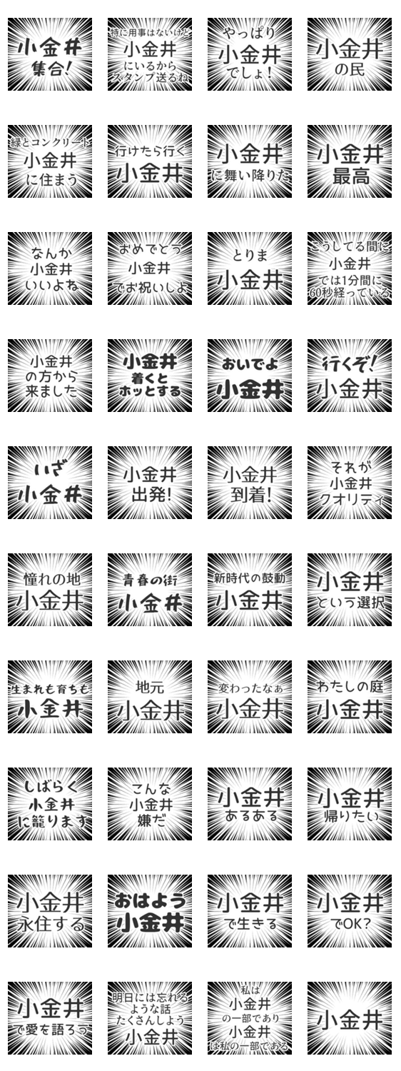 地元のための漫画風セリフスタンプ。集中線で叫べ。地元の人にも憧れてる人にも。面白いのが見つかると嬉しい。集中線。地元愛。