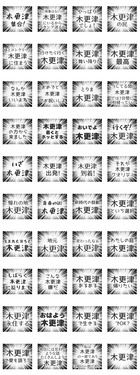 地元のための漫画風セリフスタンプ。集中線で叫べ。地元の人にも憧れてる人にも。面白いのが見つかると嬉しい。集中線。地元愛。