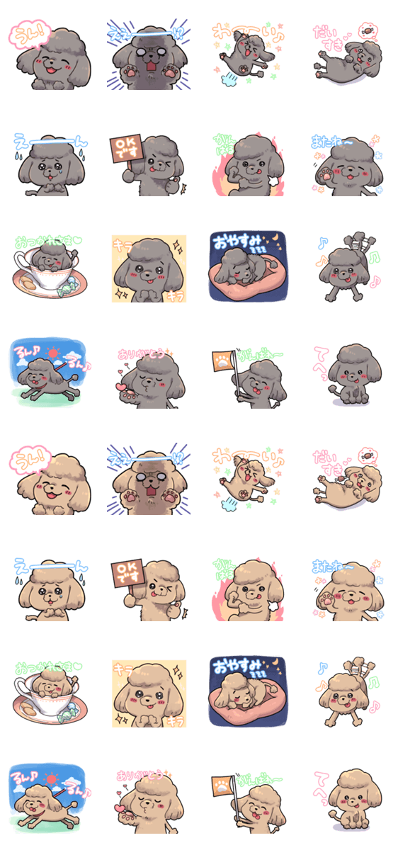 ソフトモヒカンカットのトイプードル☆ 使いやすいスタンプを集めました☆ ブラック/グレー/シルバー/レッド/アプリコット/クリーム/ベージュ