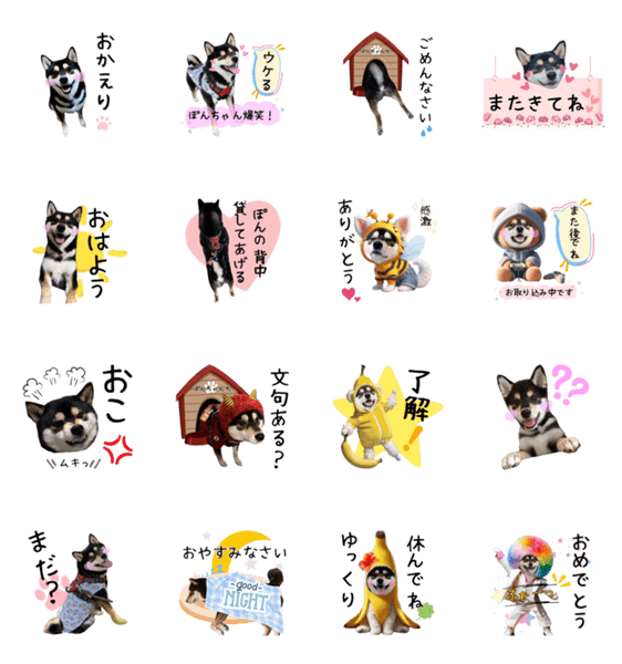 黒柴、ぽんず、柴犬、犬好き、日常、ペット、黒犬、可愛い、かわいい、和む、なごむ、癒し、いやし、コスプレ、挨拶、あいさつ、使いやすい、面白い、カラフル、明るい