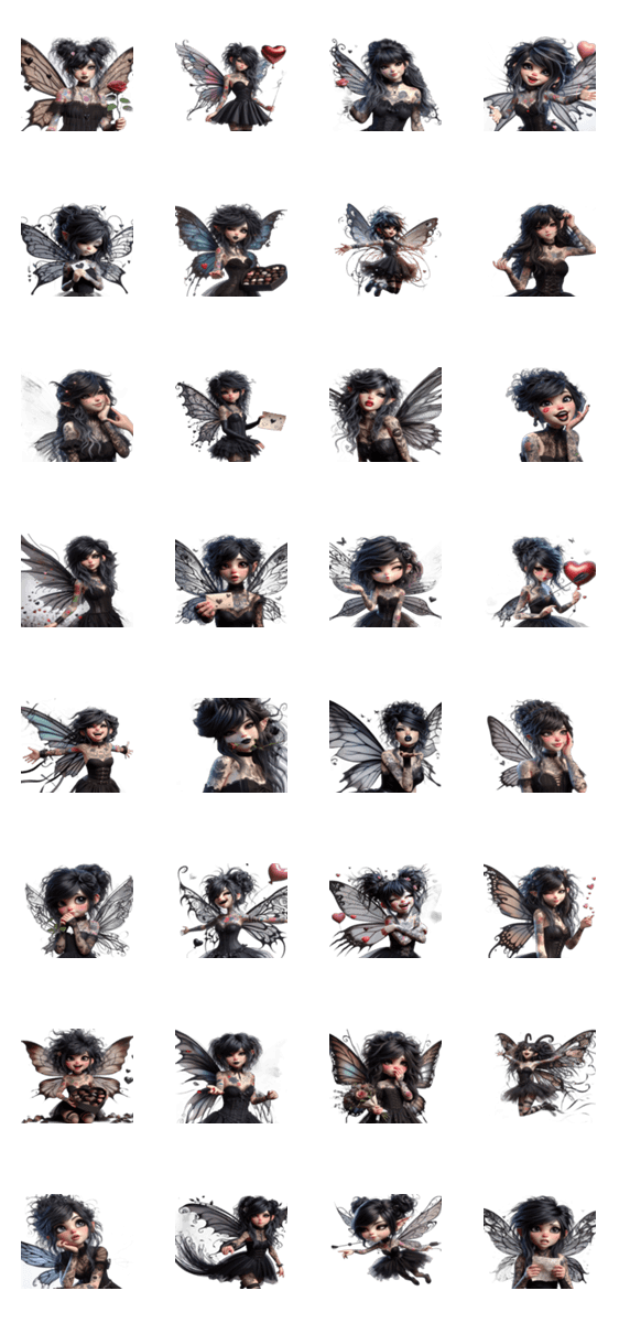 | スタンプ説明 | "蝶のゴシックガール、恥ずかしそうなヒント、誘惑、ダークスタイル、LINEスタンプ、" |