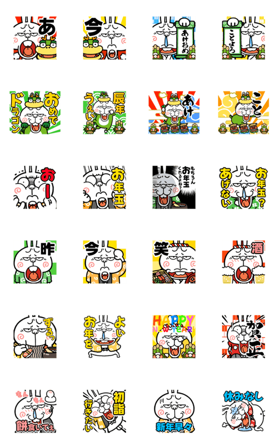 飛び出す!煽りうさぎのお正月のアニメ版です☆ドラゴンのパペット人形や着ぐるみを着て面白おかしく新年のご挨拶ができます☆【キャンペーン販売終了スタンプの再販です】