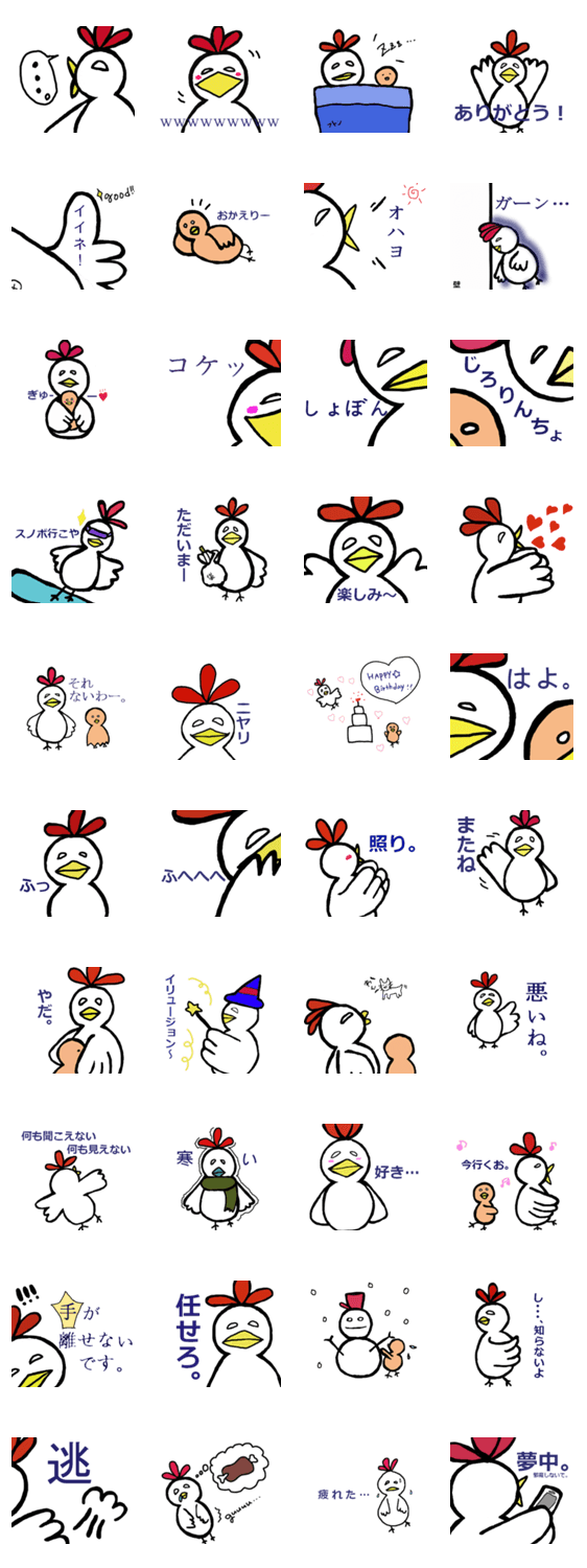 日常で使えるにわとりスタンプです。たまにひよこのお友達出演。