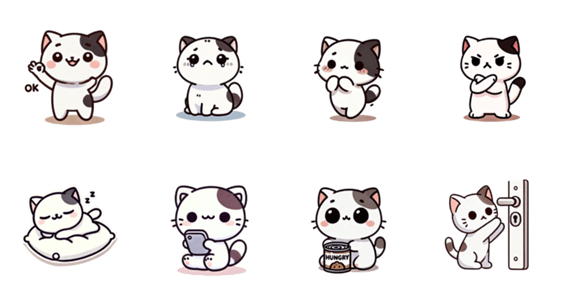 | スタンプ説明 | HooHoo is an adorable and playful cat with white fur and dark patches. Full of expressions, she can be cute, mischievous, or cuddly bringing fun to every chat! |
