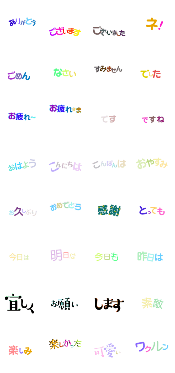 | スタンプ説明 | 既存の絵文字に一言付け足しできる言葉を集めたシリーズです。お待ちのスタンプに一言添えて |