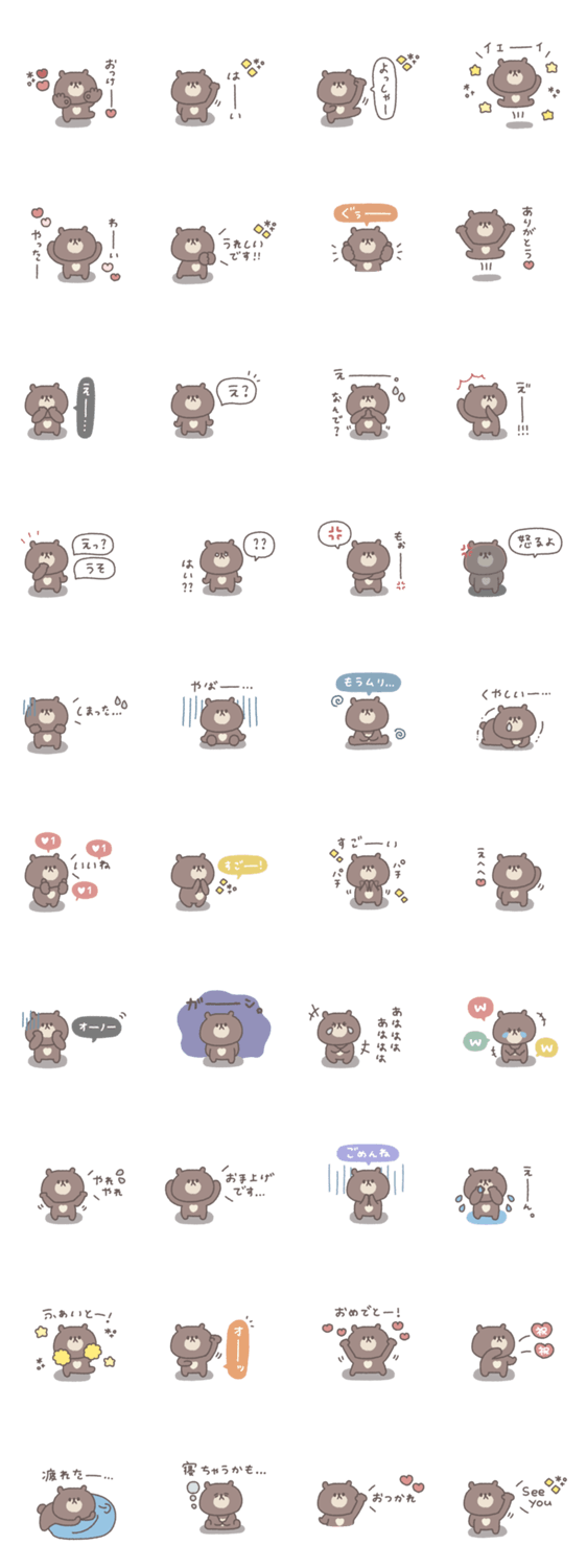 一つあると便利な小さくてかわいいくまのスタンプです。 くま/大人可愛い/シンプル/あいさつ/吹き出し/くすみカラー/カラフル/リアクション