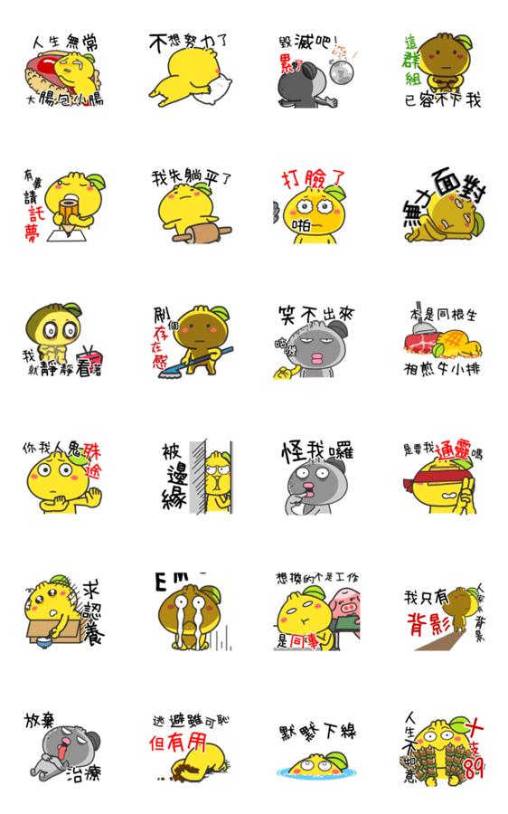 This set captures the no-effort vibe with phrases like Done trying, Lying low, Logging off. Perfect for chill chats!