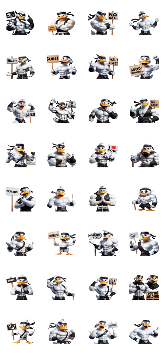 アヒル忍者、ちょっと待って、息を整える、ユーモア、忍者、一時停止、スタンプ、LINEスタンプ、イラスト、コミュニケーション