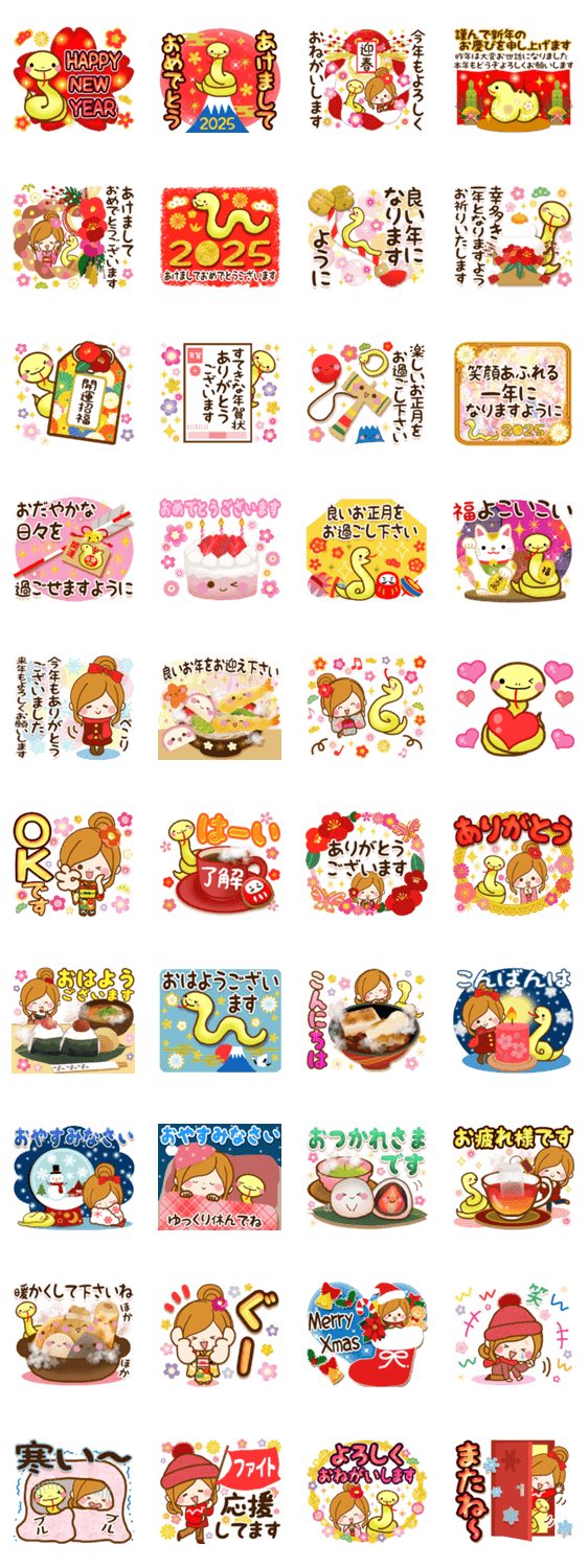 冬の日常、クリスマス、年末年始のご挨拶にぴったりな巳年スタンプです♪年賀状がわりにも使えます♡楽しく冬が過ごせますように♪/お正月/蛇/大晦日/あけおめ/クリスマス