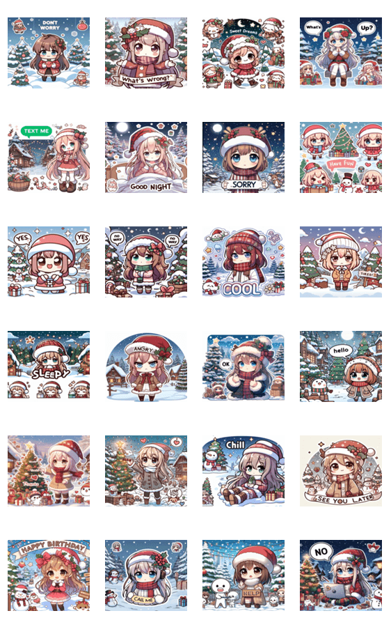 雪の中で祝うクリスマスの楽しいスタンプセットです。会話にホリデー気分を!